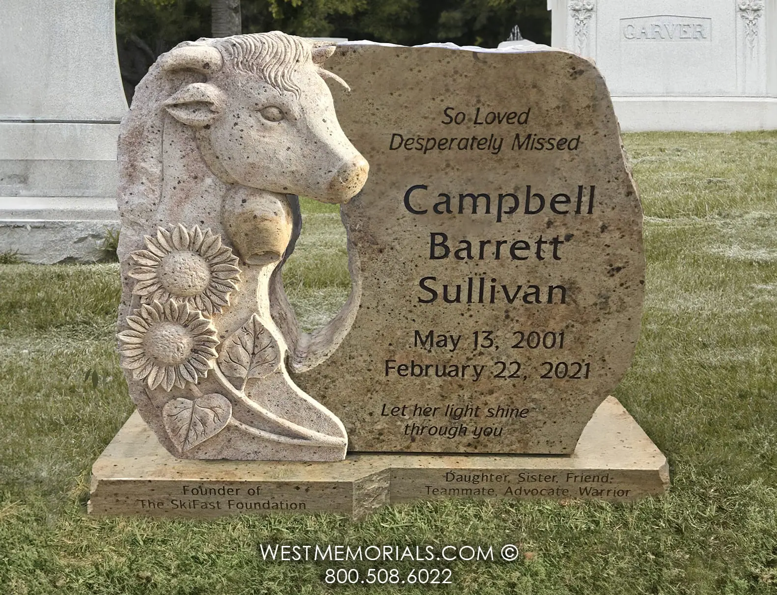 ©West Memorials Please call 1-866-598-9937 for more information about this monument. We make each custom cemetery memorial one at a time. If you like this design but want to personalize it, we will be glad to send you a rendering. We look forward to hearing from you.